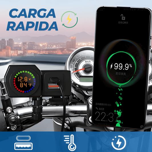AHORRAS S/. 50Cargador Moto USB + Tipo C con Voltímetro – Incluye Guantes